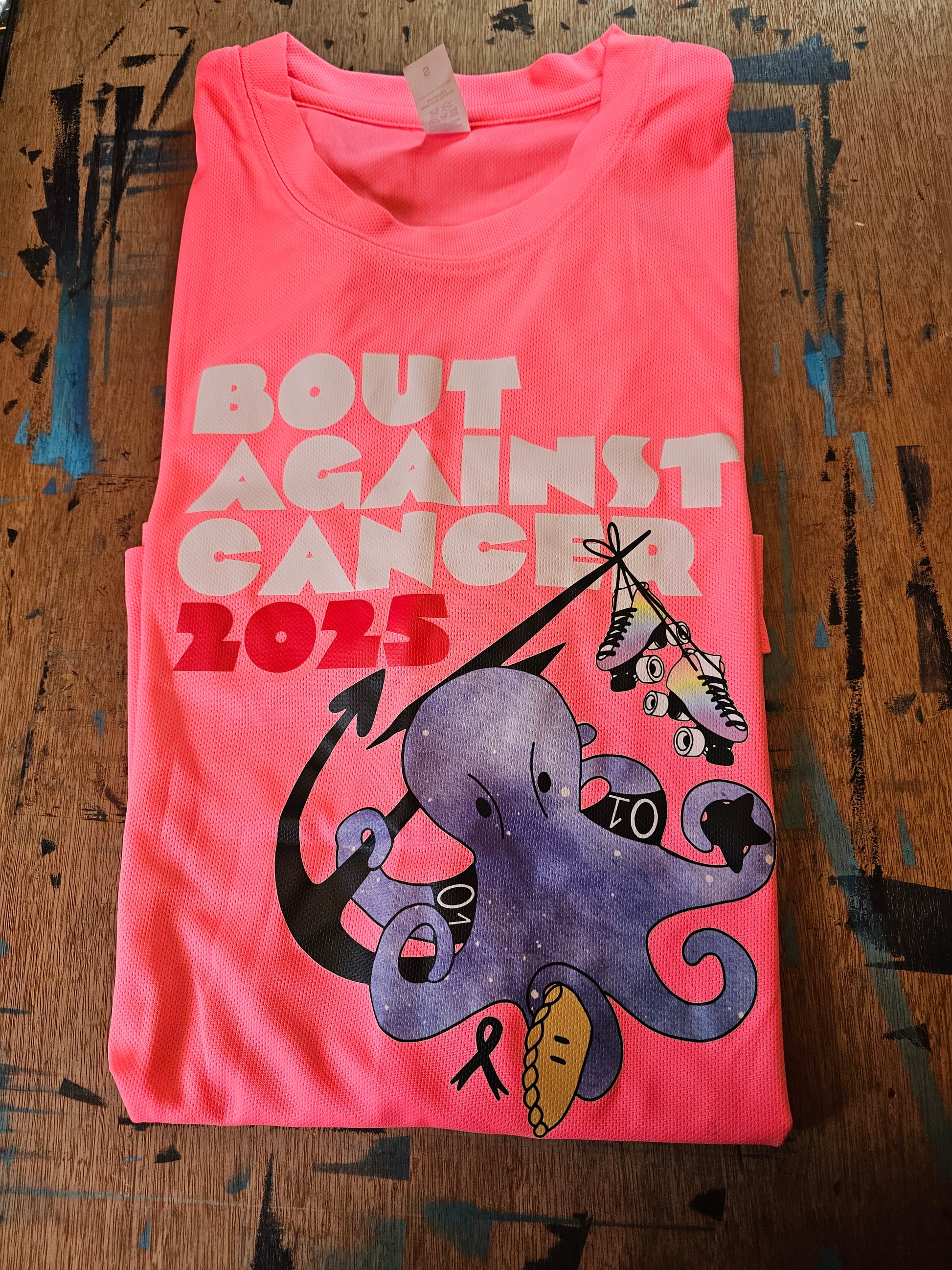 Quick dry sports tee shirt featuring this years Bout Against Cancer octopus logo. Available for week only.